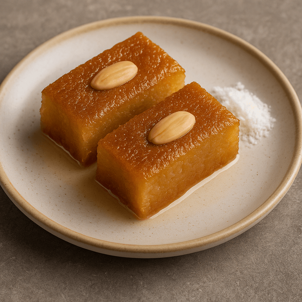 2 Stuks ambachtelijk gemaakte Şam Tatlısı volgens traditioneel recept. Deze zachte en sappige griesmeelcake wordt goudbruin gebakken en doordrenkt met zoete suikersiroop voor een heerlijke, smeuïge textuur. Elke portie wordt traditioneel afgewerkt met een amandel bovenop voor een authentieke smaakbeleving.